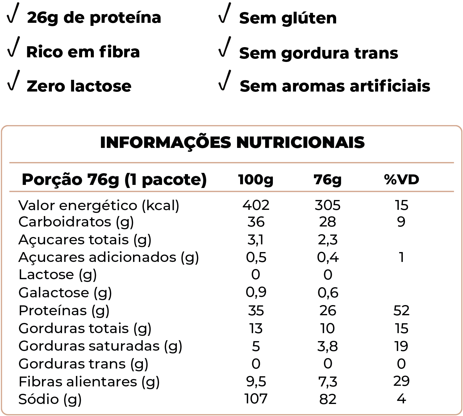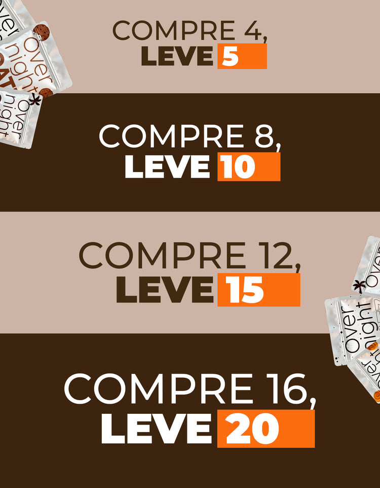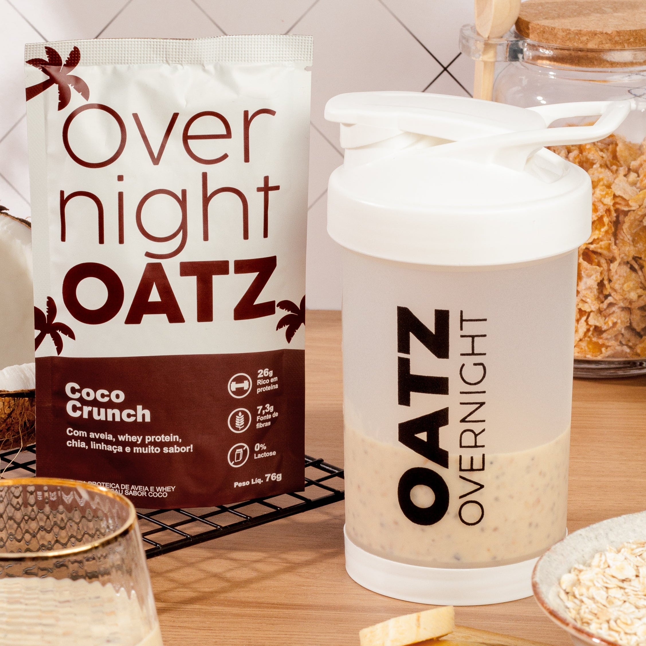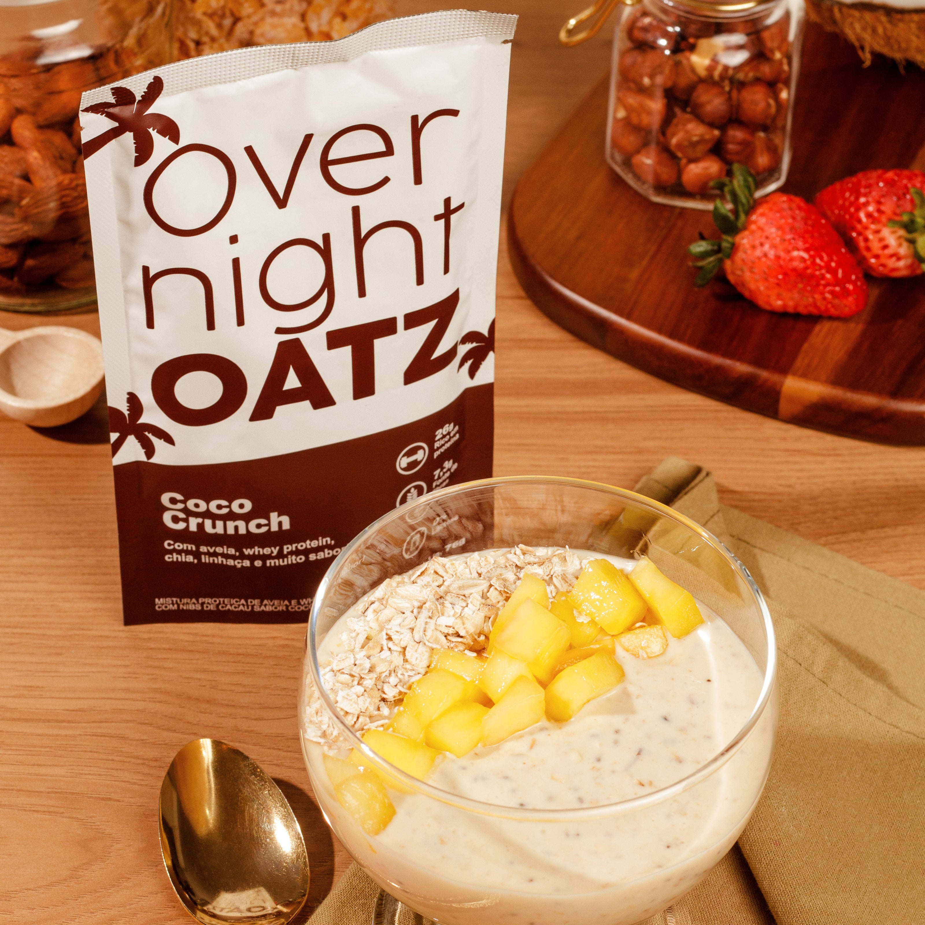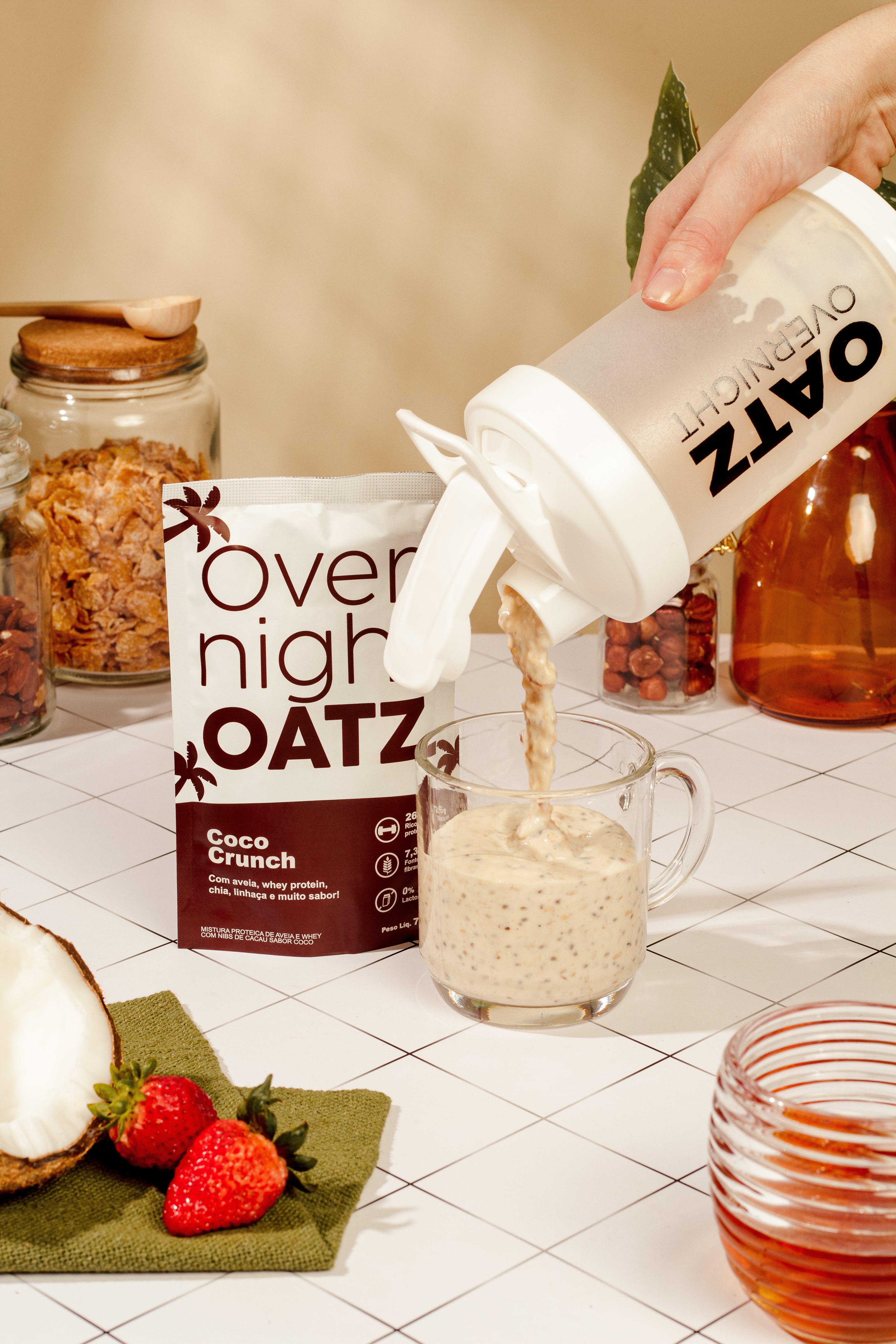 Nosso Overnight Oatz é feito com uma base de grãos ancestrais como aveia, chia e linhaça. Também adicionamos proteínas de alta qualidade, nibs de cacau, aromas naturais e frutas desidratadas (nos sabores específicos), garantindo um produto saboroso, nutritivo e com textura única.