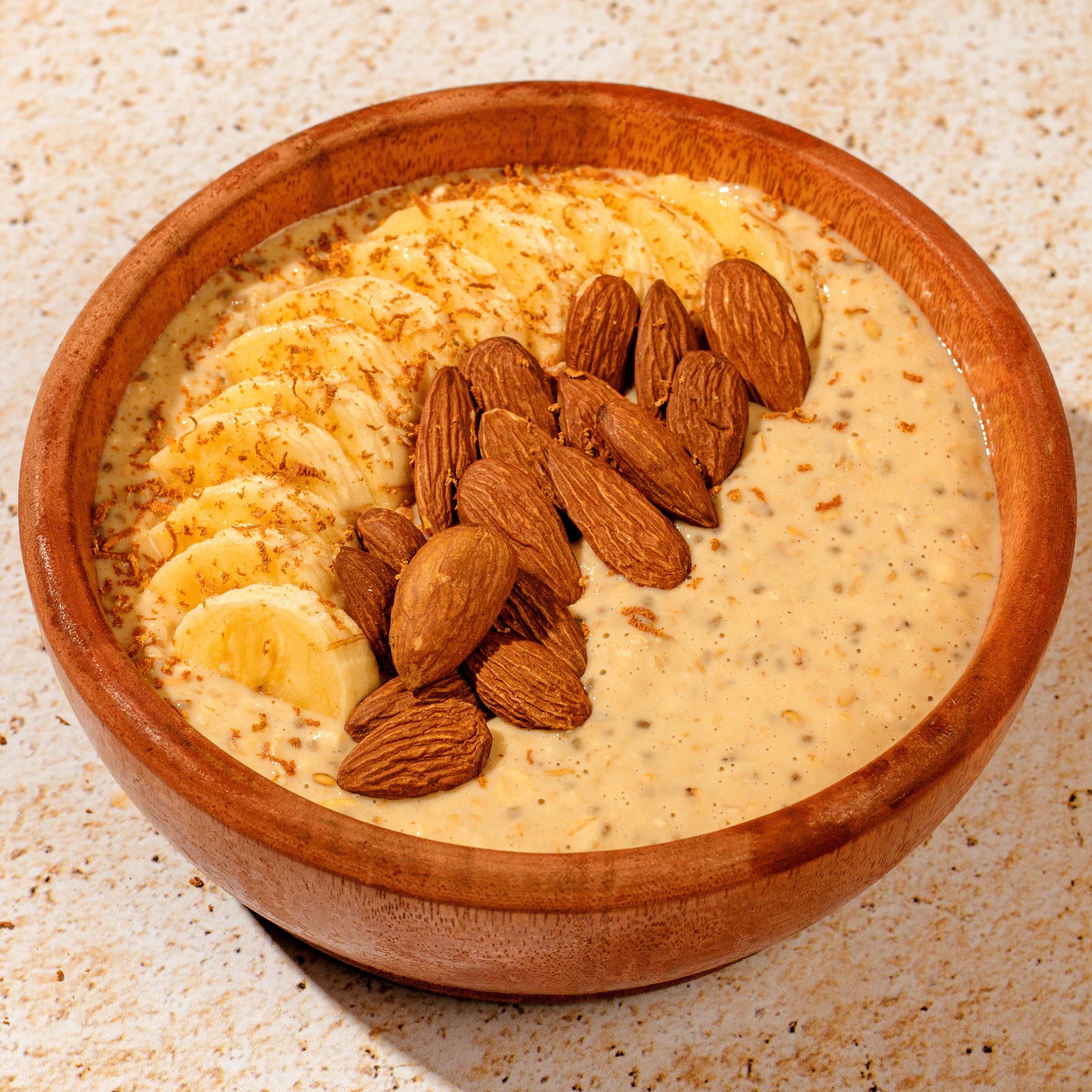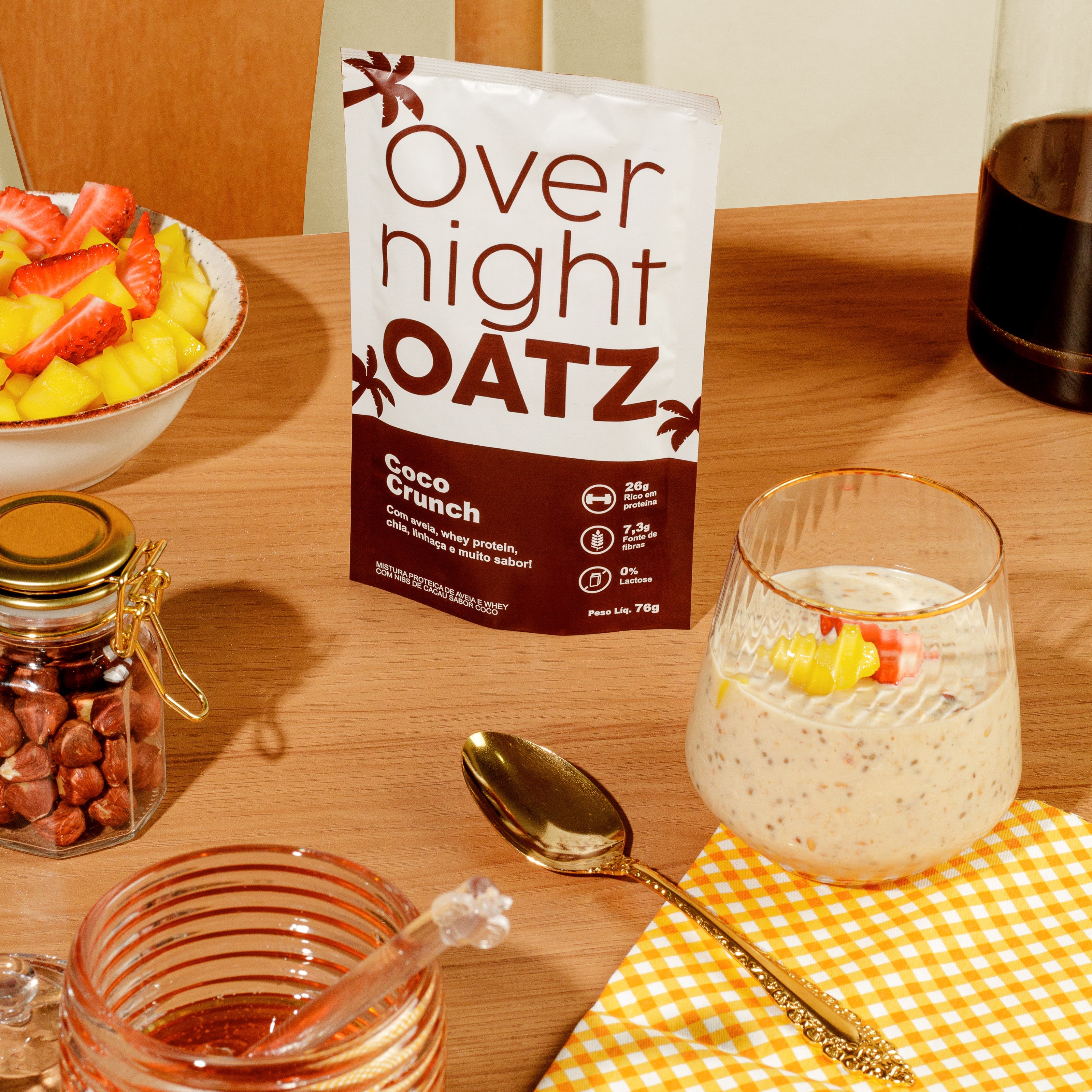 Nosso Overnight Oatz é feito com uma base de grãos ancestrais como aveia, chia e linhaça. Também adicionamos proteínas de alta qualidade, nibs de cacau, aromas naturais e frutas desidratadas (nos sabores específicos), garantindo um produto saboroso, nutritivo e com textura única.