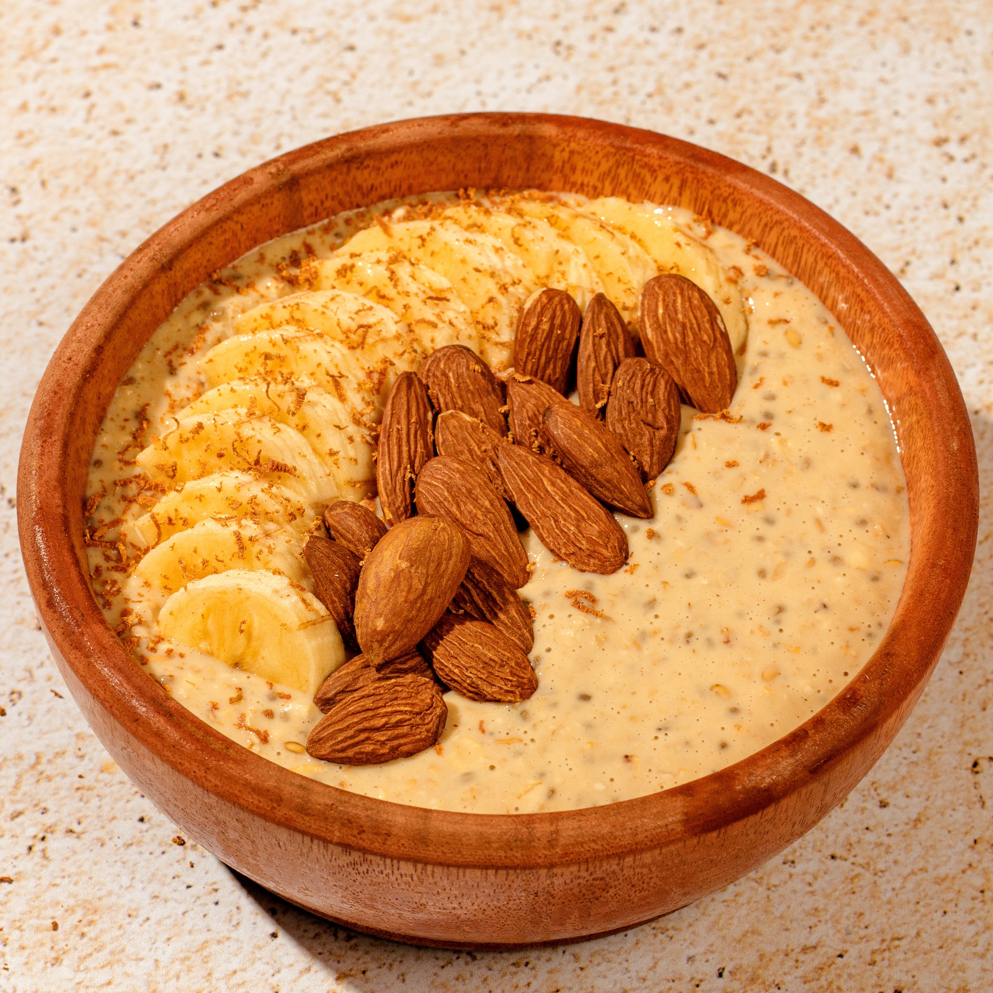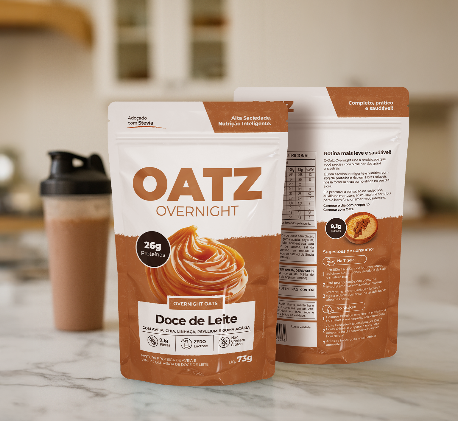 Nosso Overnight Oatz é feito com uma base de grãos ancestrais como aveia, chia e linhaça. Também adicionamos proteínas de alta qualidade, nibs de cacau, aromas naturais e frutas desidratadas (nos sabores específicos), garantindo um produto saboroso, nutritivo e com textura única.